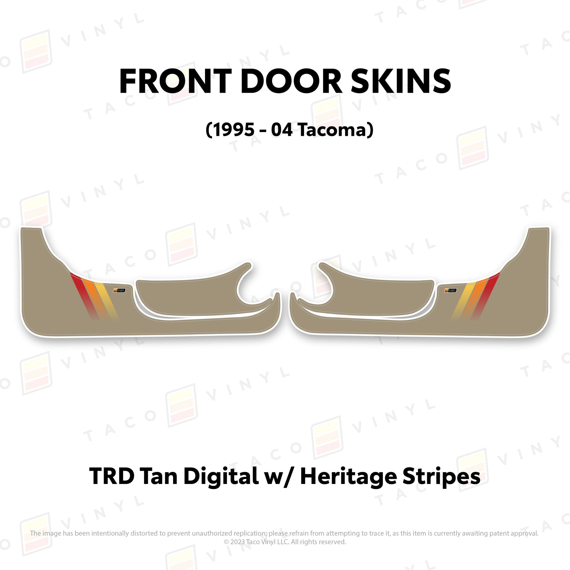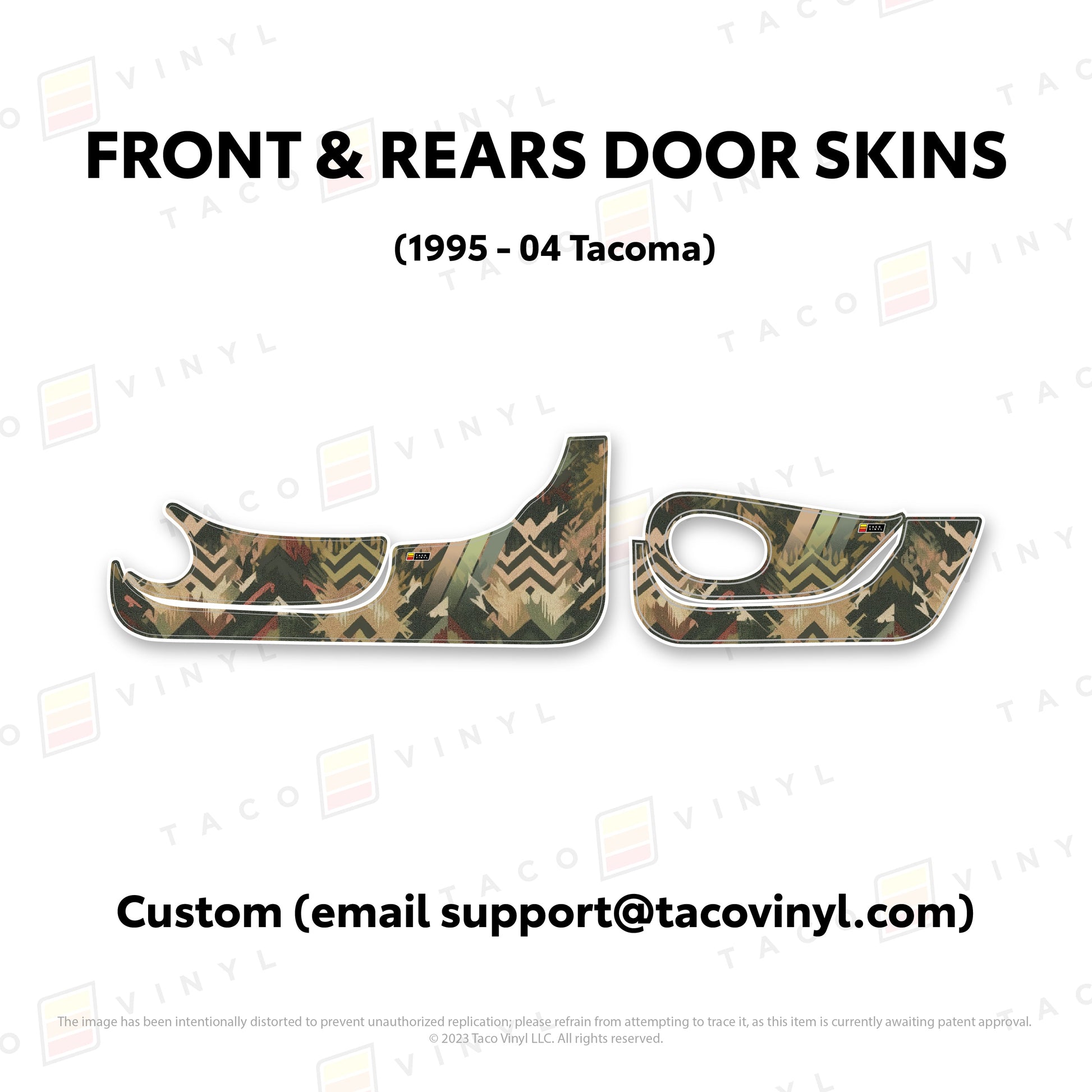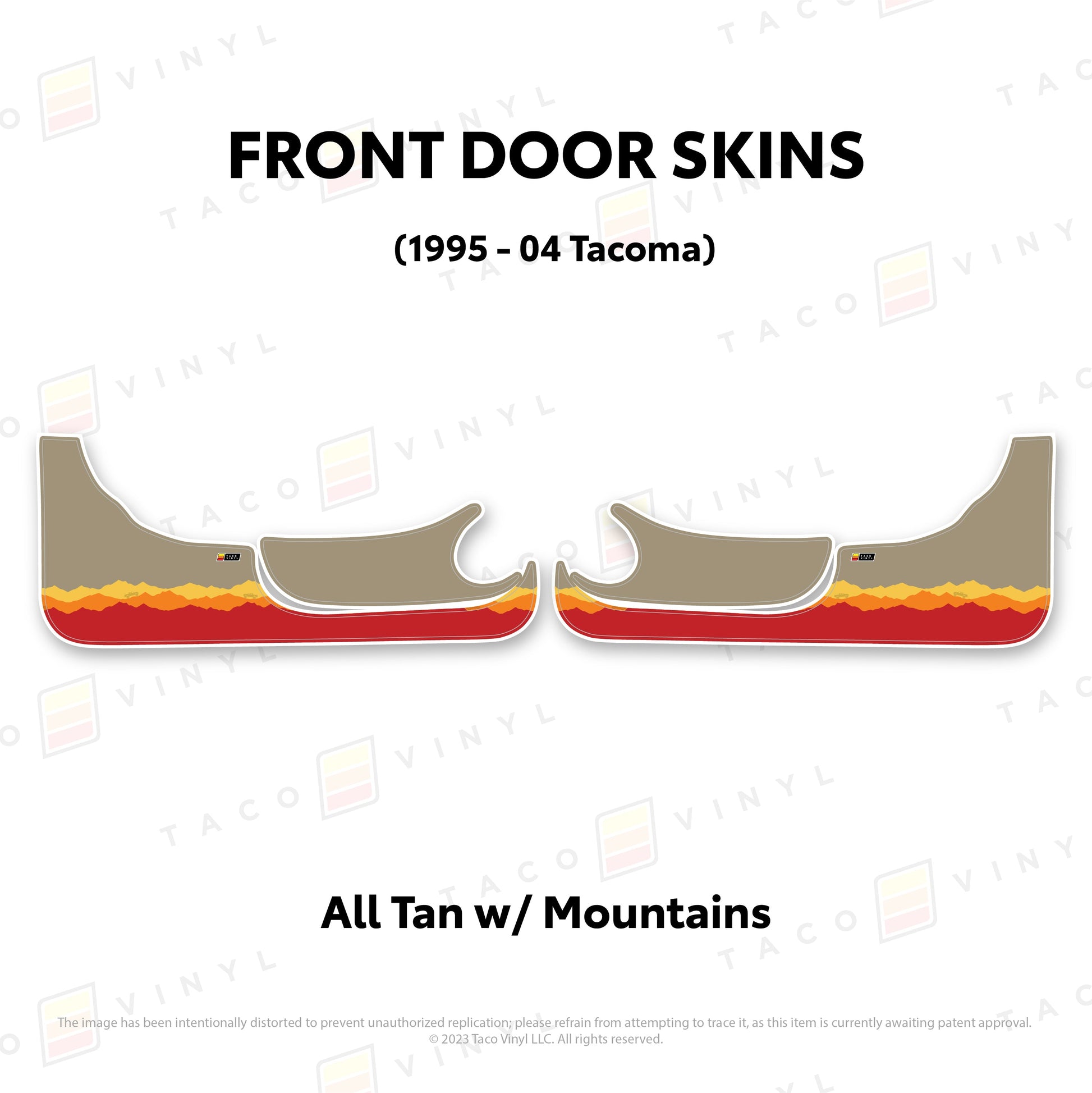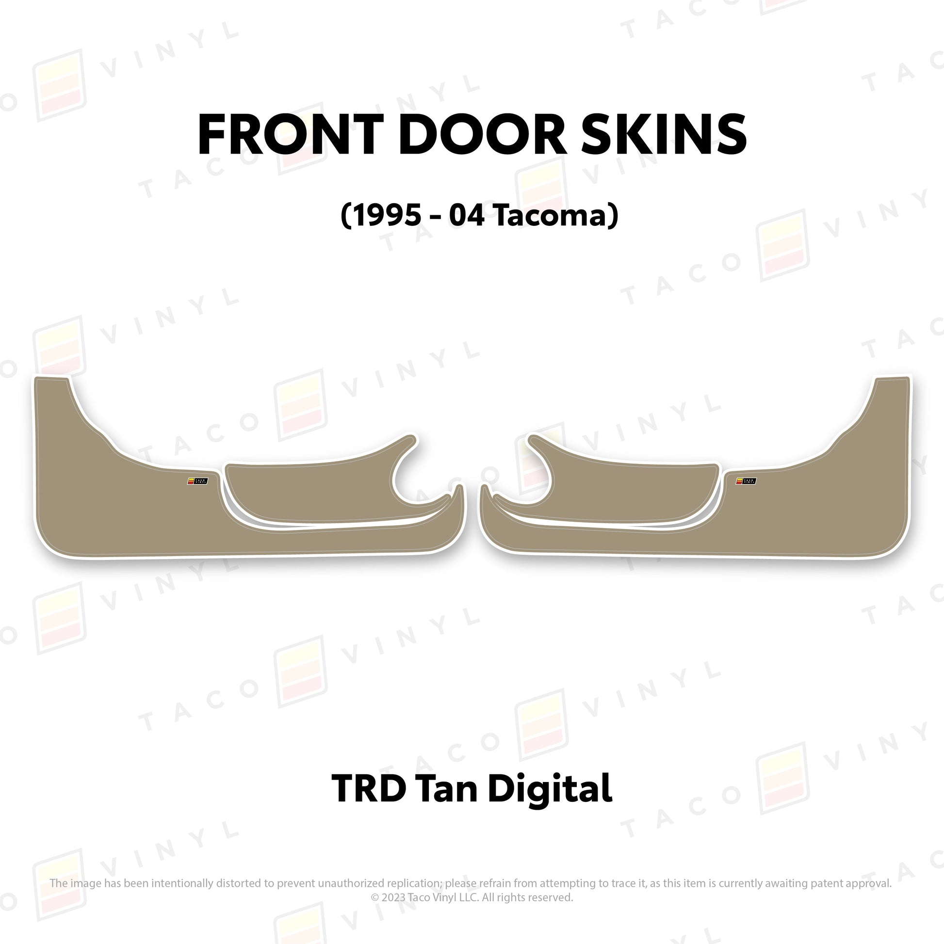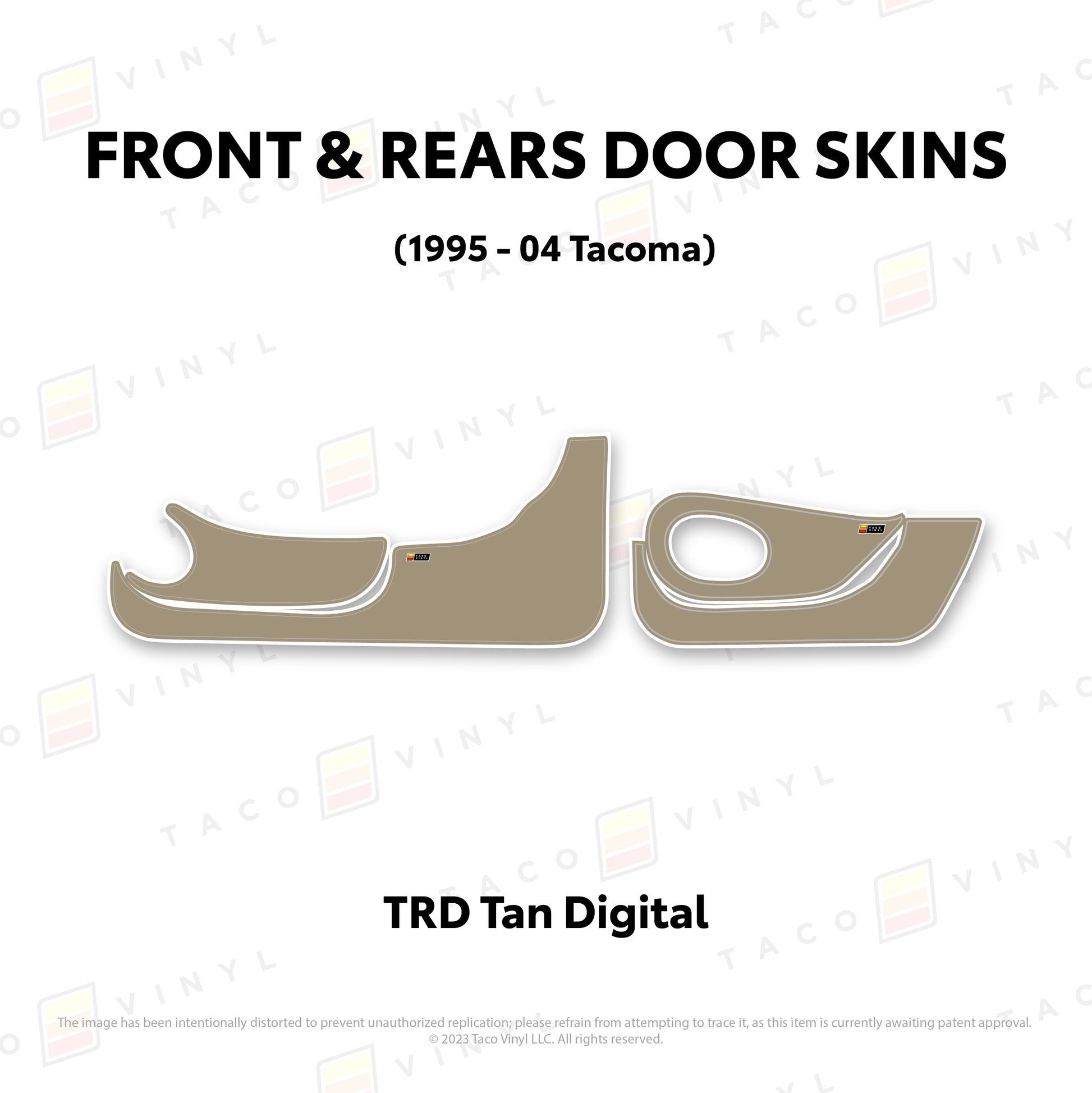 Welcome the world's first door skins for your 2nd gen Tacoma. Our door skins are made of the best and thickest material to get the job done. Initially created to shield against door wear and tear caused by boots, tools, pets, and recreational activities, we later realized that our door skins also boast aesthetic appeal. Whether you intend to maintain your truck for the long haul or have it on lease, our door skins effectively preserve the door panel's condition while imparting a stylish design if desired.
