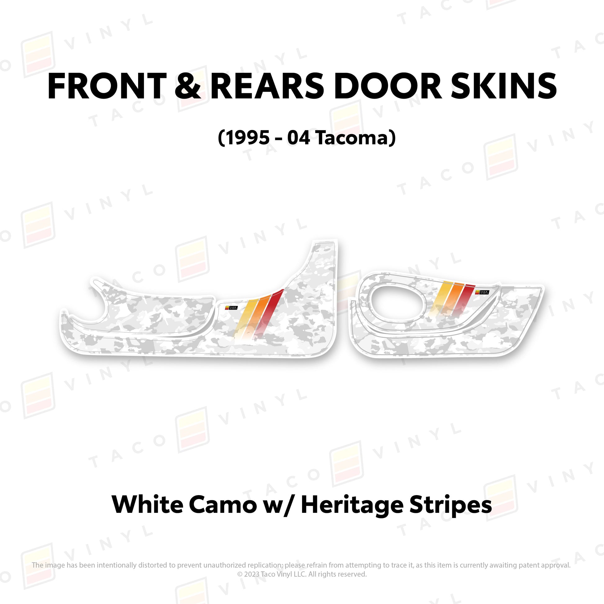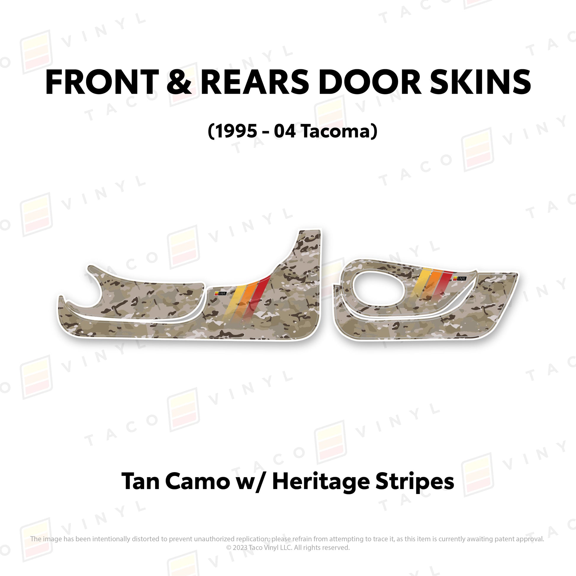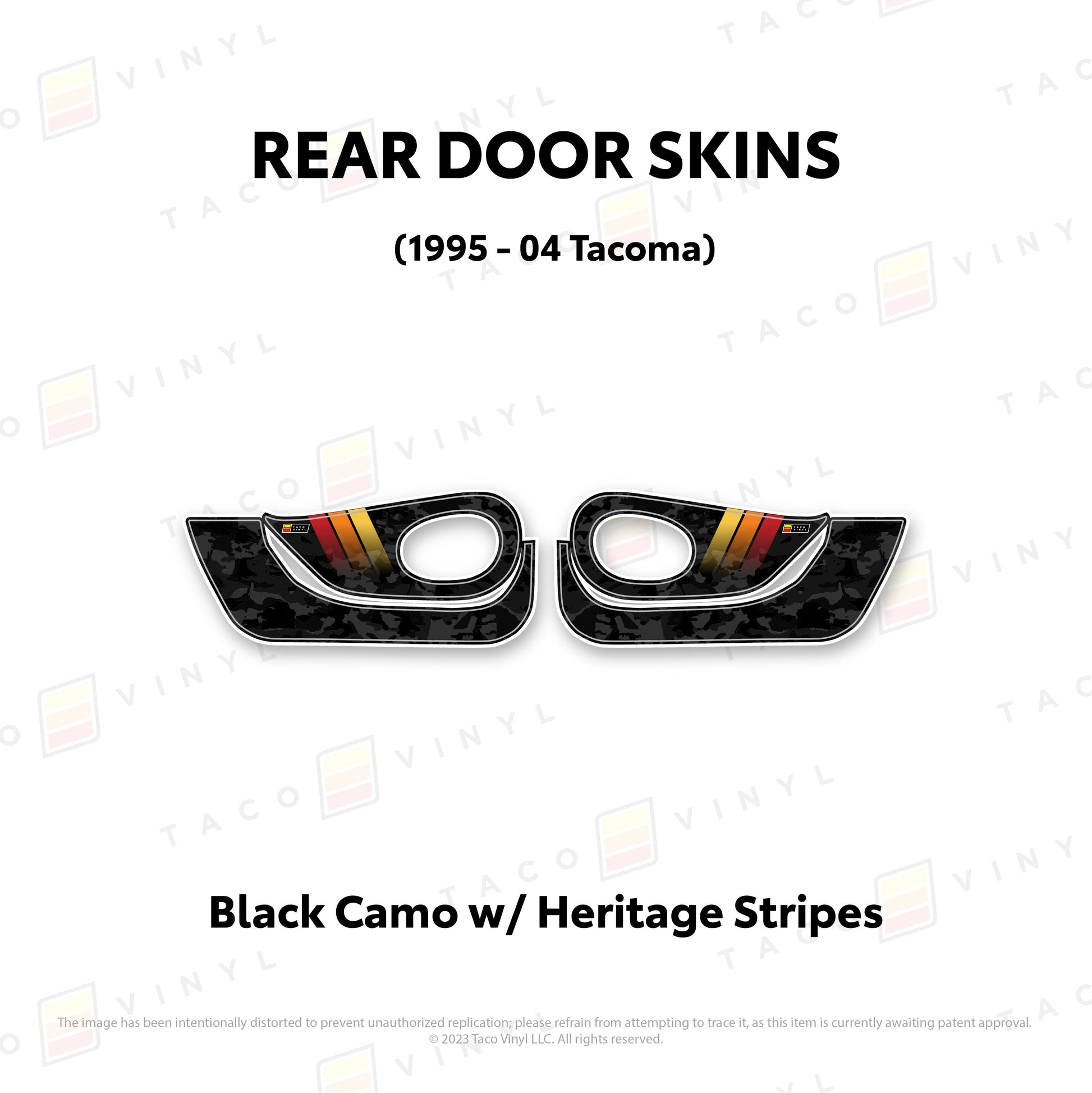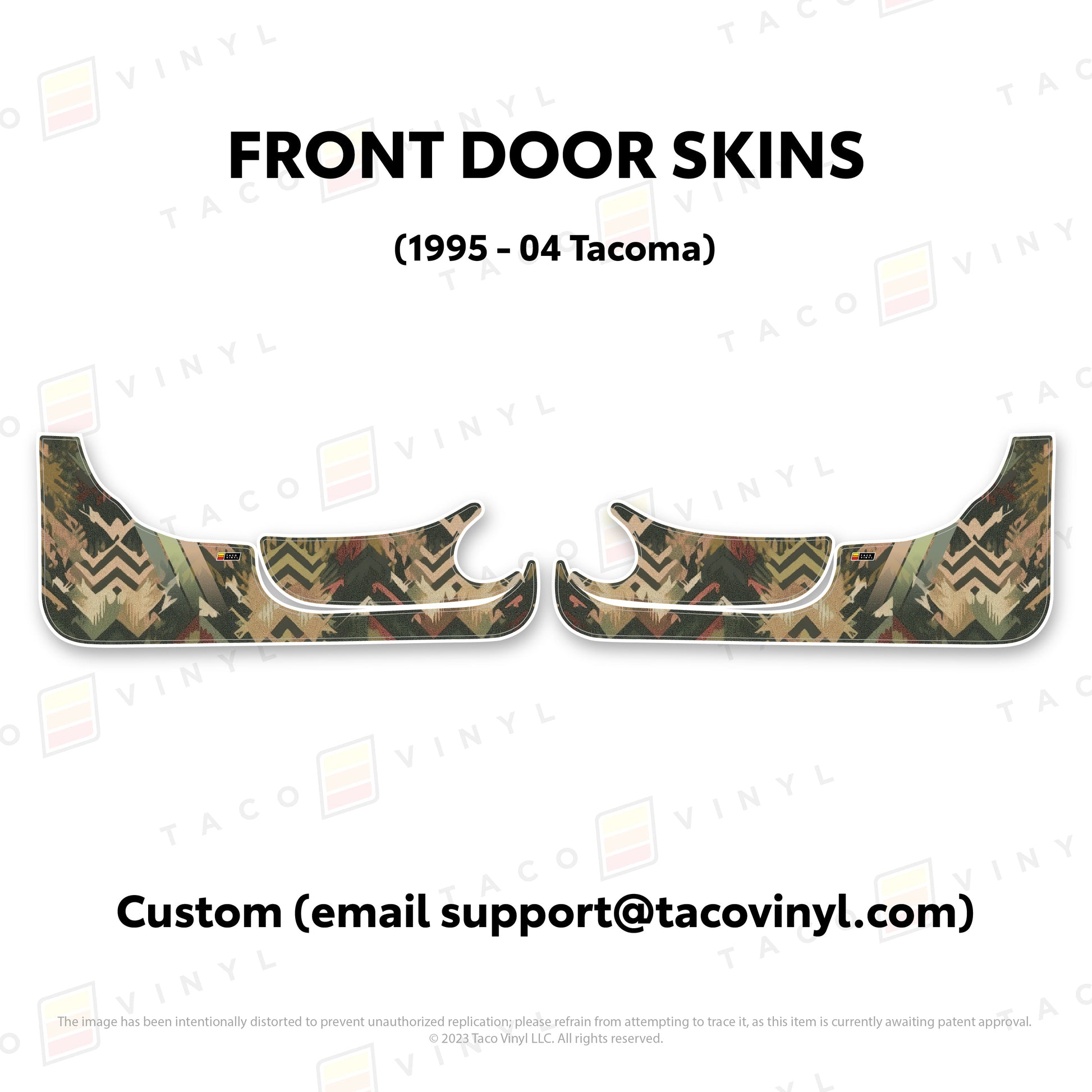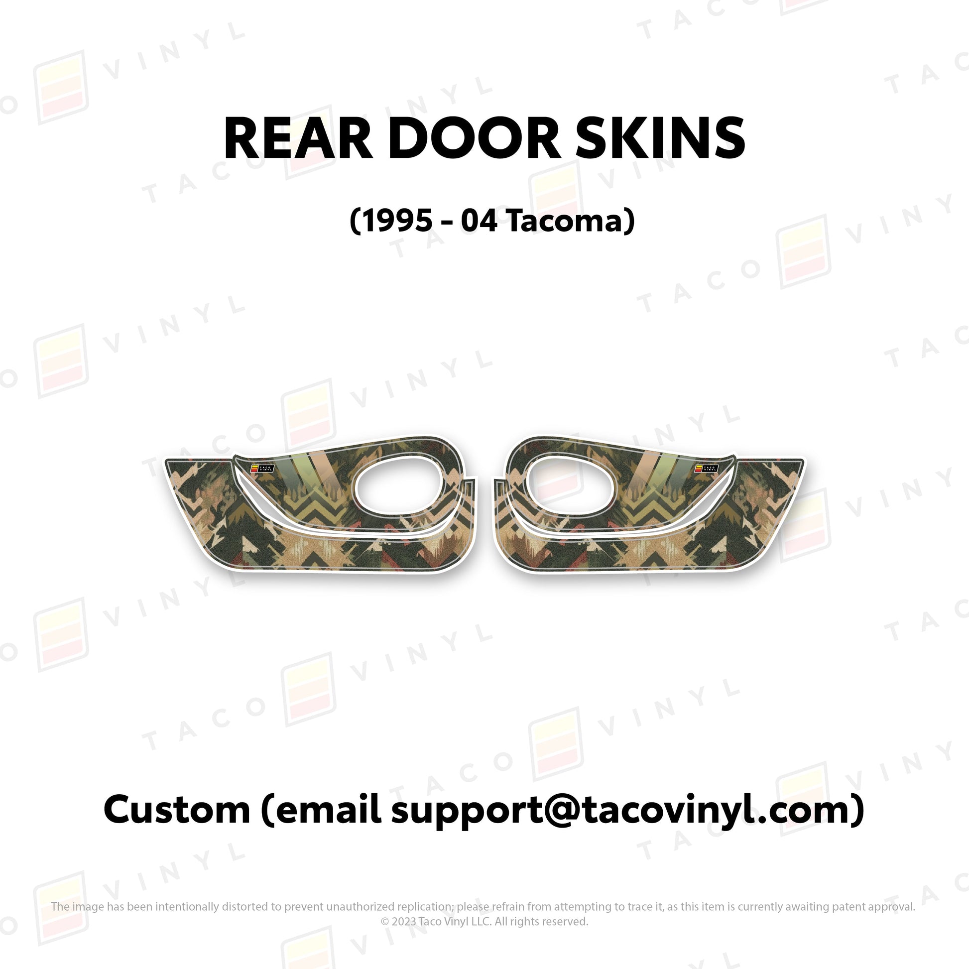 Welcome the world's first door skins for your 2nd gen Tacoma. Our door skins are made of the best and thickest material to get the job done. Initially created to shield against door wear and tear caused by boots, tools, pets, and recreational activities, we later realized that our door skins also boast aesthetic appeal. Whether you intend to maintain your truck for the long haul or have it on lease, our door skins effectively preserve the door panel's condition while imparting a stylish design if desired.