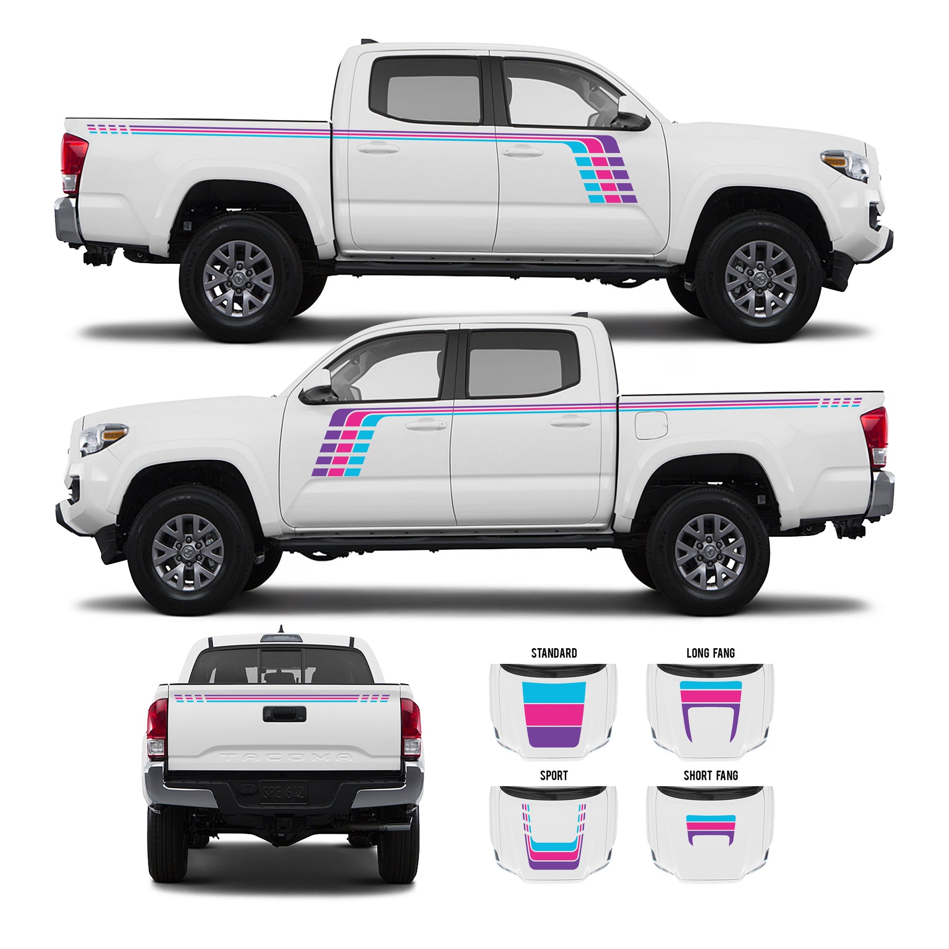 Introducing our checkered full stripe kit for the 3rd generation Tacoma's short bed! Designed to be user-friendly during installation, these kits are crafted with high-quality air release vinyl, allowing for easy bubble release post-installation. While we recommend professional installation for the best results, we have made sure that our Checkered Stripe Kit comes in various eye-catching color schemes and a stunning SATIN finish, ensuring that your vehicle will stand out on the road.