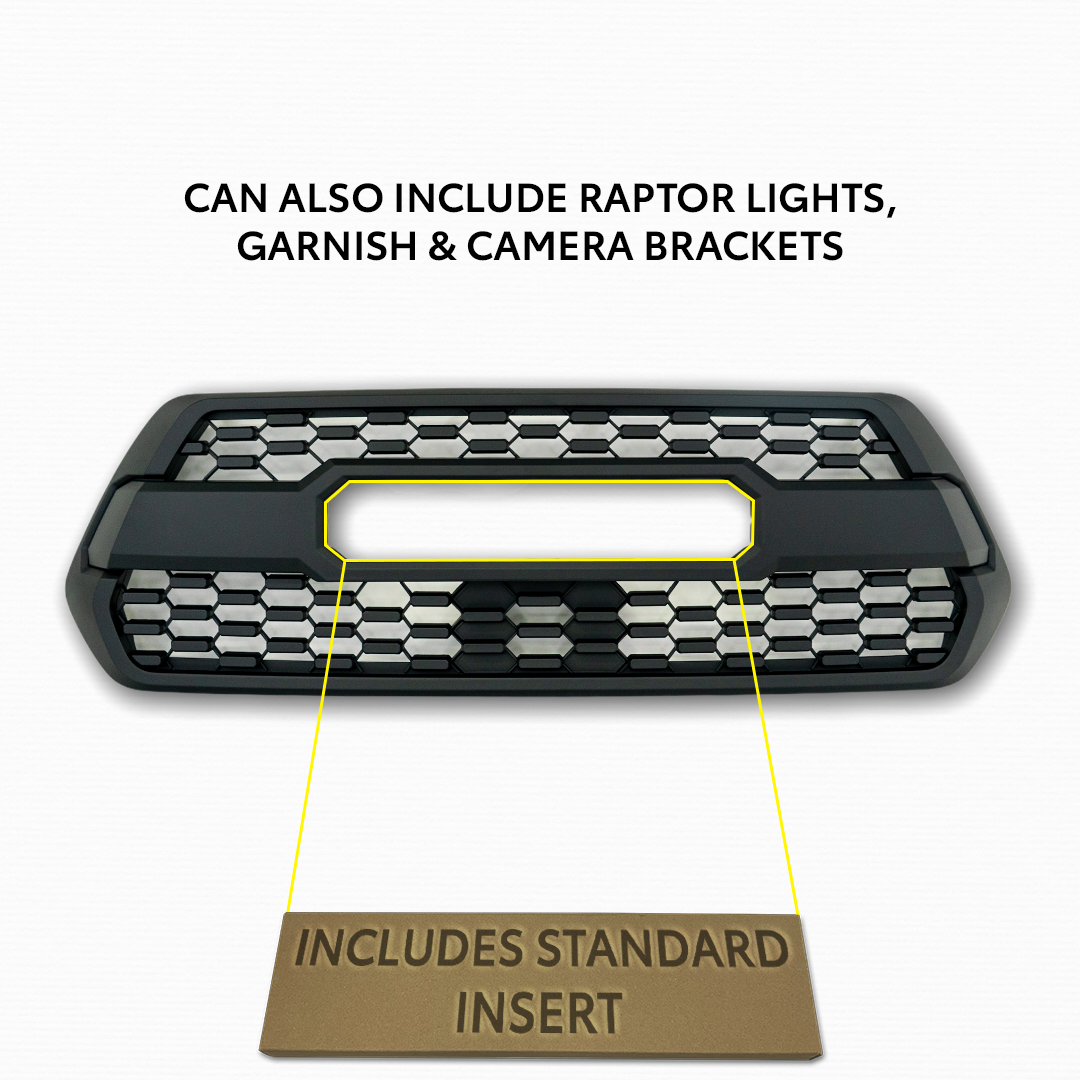 Our high-quality pro grille is among the most attractive options on the market. It is often the first modification that truck owners make due to its effortless installation and transformative effect on the truck's appearance. In addition, we have a variety of accompanying accessories available for accommodating sensors, cameras, decals, and more. If you're ready to update the aesthetics of your Tacoma, THIS is what you should get.