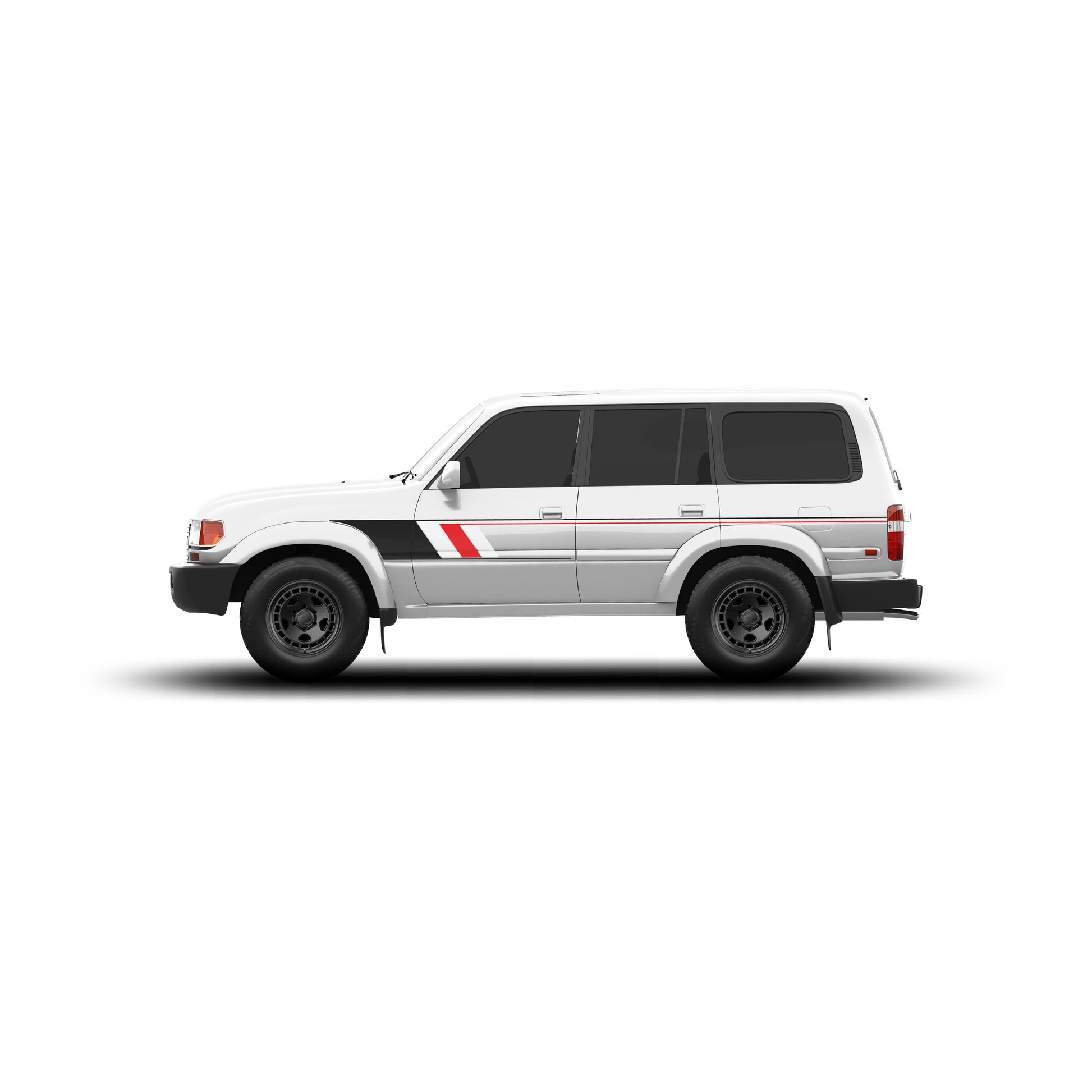Introducing our full stripe kit for the 80 series land cruiser. These stripes will also fit 1991-97 Lexus LX450 with minor modification. These kits are crafted with high-quality air release vinyl, allowing for easy bubble release post-installation. We have made sure that our Checkered Stripe Kit comes in various eye-catching color schemes and a stunning SATIN finish, ensuring that your vehicle will stand out on the road.