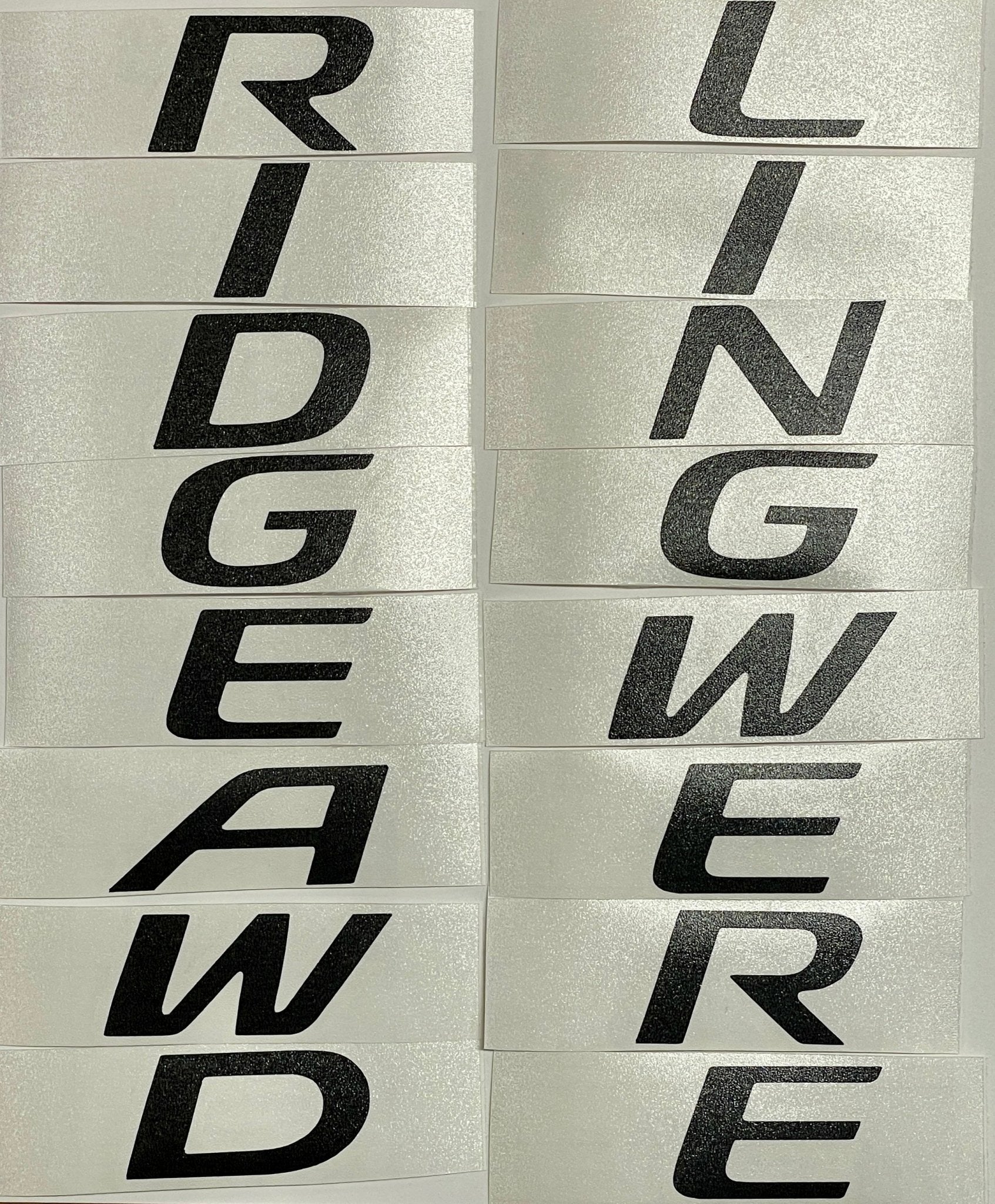 - Individual letter decals can be applied to the face of the letters on your tailgate emblems (RIDGELINE/AWD). (emblems not included)